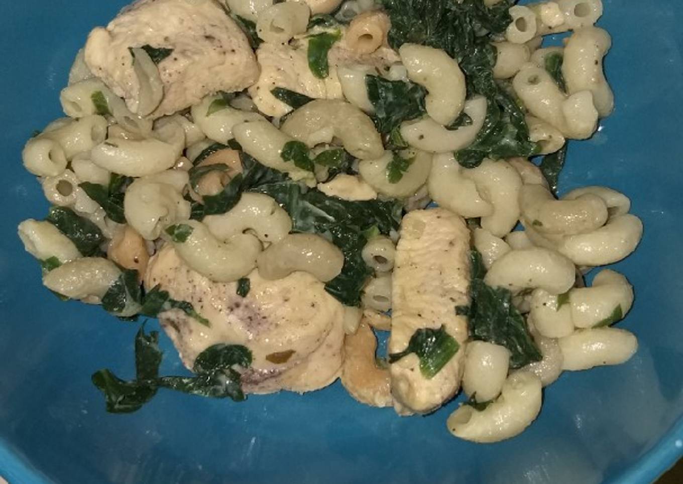 Pollo con macarrones y espinacas